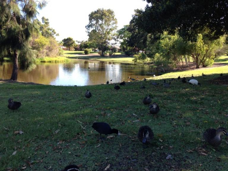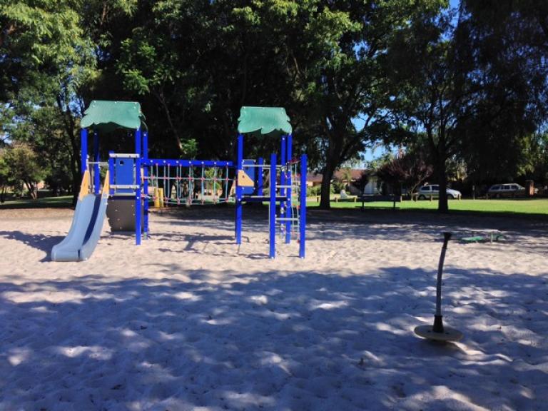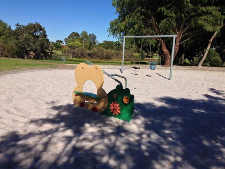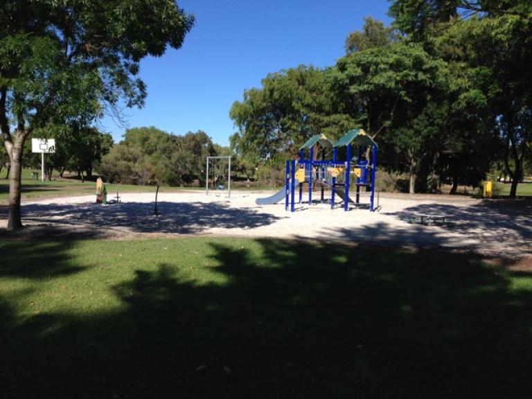 Neighbourhood park on sand situated in a lovely reserve around a small lake. Abundant birdlife makes this park a great destination for local walks. The playground comprises a pretty good fort with fireman's pole, slide and climbing structures, swings, basketball halfcourt, play shop and toddler table and chairs. Partly shaded by trees at some times in the day. Not fenced but located a fair way from the lake. Park on Dampier or Victoria Courts.