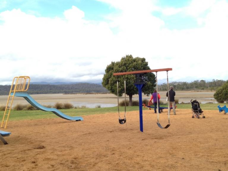 Very basic play equipment, slide, swing and seesaw. On the banks of muddy creek and rubicon estuary. Would be good for swimming in summer when the tide is in.